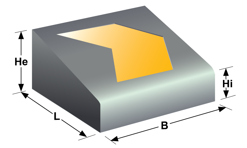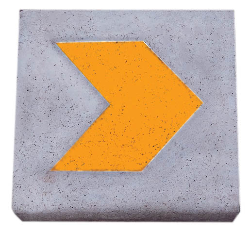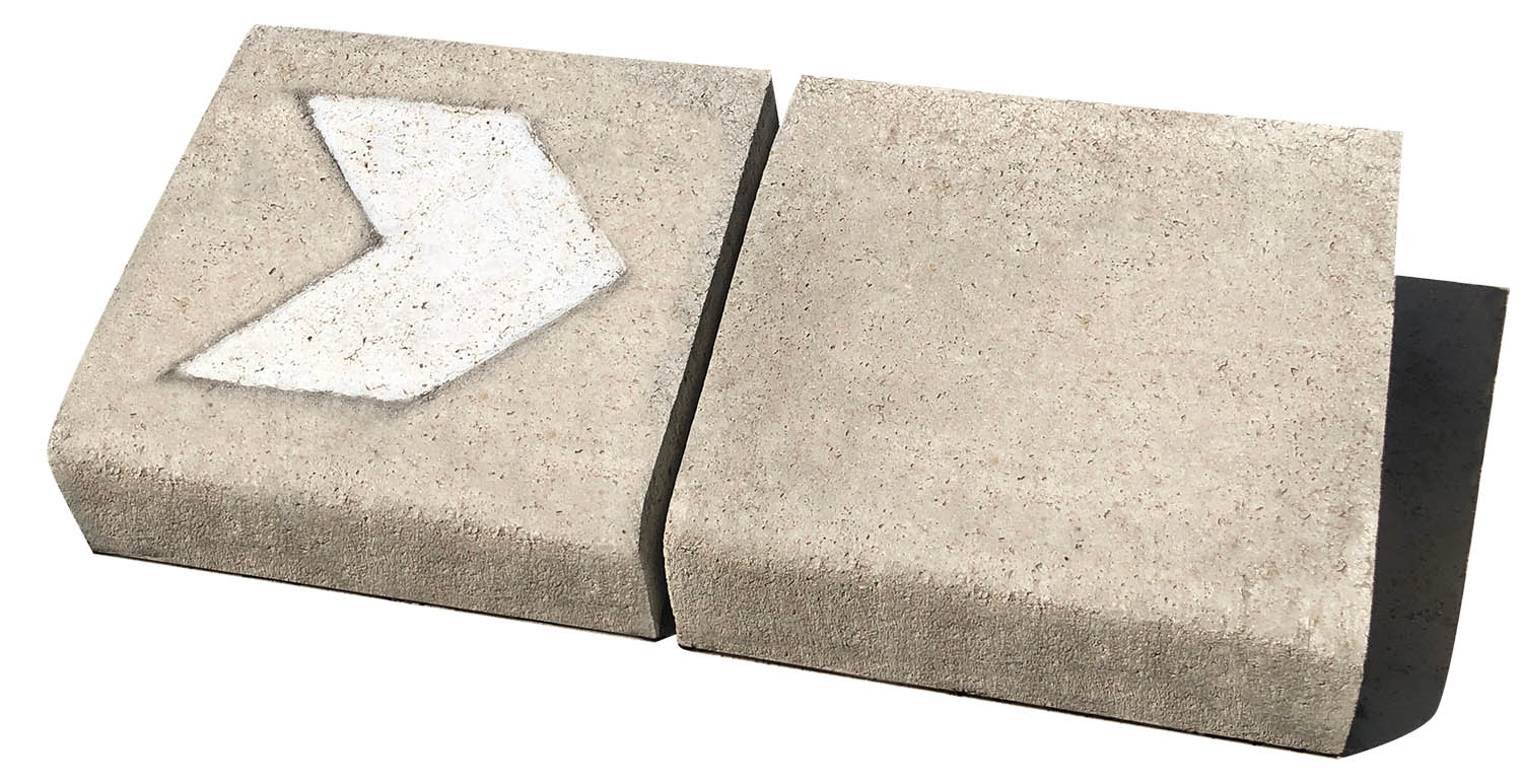 Elemento di calcestruzzo prefabbricato, destinato a separare superfici allo stesso livello o di livelli differenti per consentire il delineamento fisico o visivo, contenimento e/o separazione tra superfici soggette a diversi tipi di traffico. Possibilità di fornitura con impronta freccia.