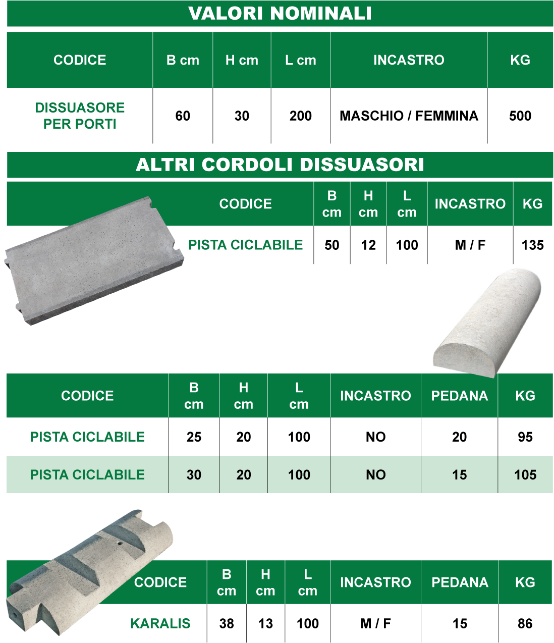 Il dissuasore delle dimensioni pari a m. ____x____x____ (Lungh. x Largh. x H.), costituito da blocco monolitico di conglomerato cementizio prefabbricato, vibrato, confezionato con cemento tipo 42,5R ed inerti di cava o di fiume vagliati e lavati, avente resistenza media a rottura pari a 350 kg/cm².