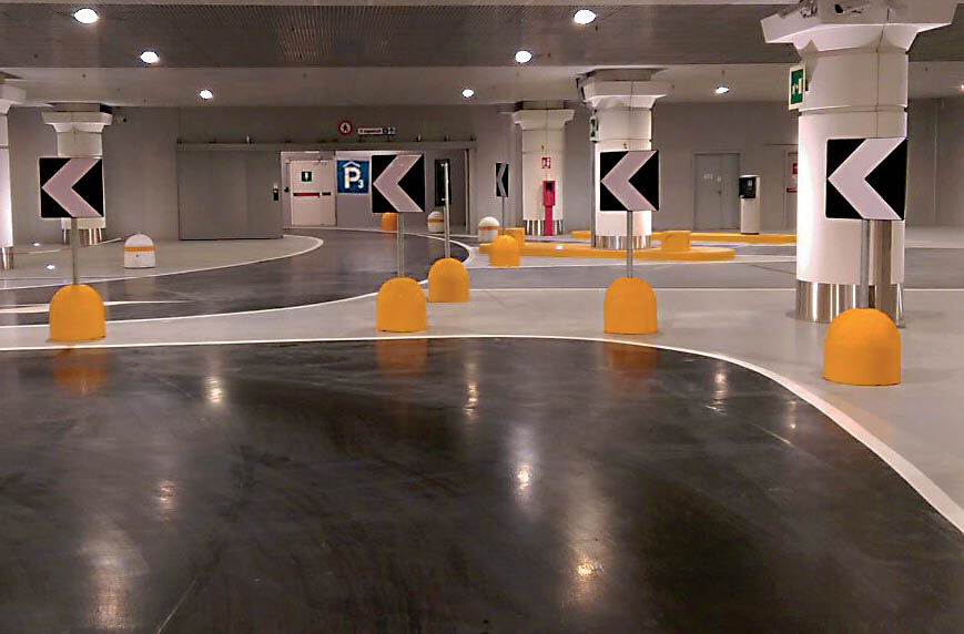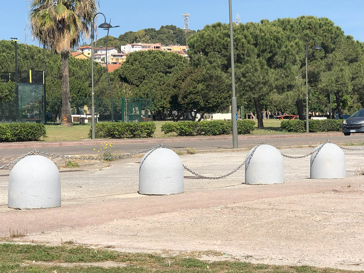 Dissuasori di traffico per delimitare aree di parcheggio ed impedire la sosta dei veicoli, prodotti in calcestruzzo colato con effetto faccia a vista, completo di golfaro per il sollevamento e il posizionamento in opera. Elemento, detto ‘a panettone’, delle dimensioni pari a Ø cm. ______x H cm. ______