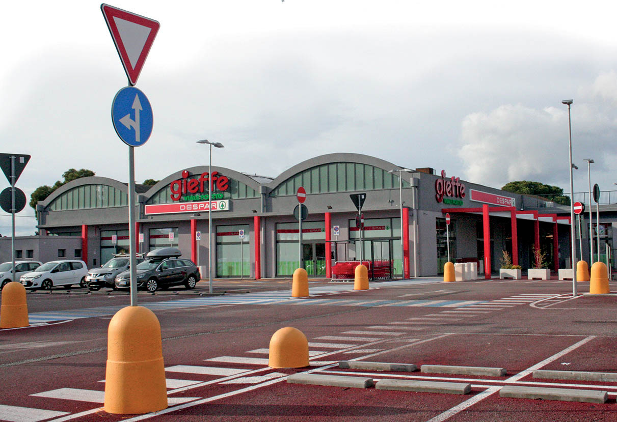Dissuasore stradale “a panettone” prefabbricato in calcestruzzo vibrato, corredato di golfare zincato o foro passante per segnaletica verticale. I dissuasori sono elementi di calcestruzzo prefabbricato, destinati a separare superfici allo stesso livello o di livelli differenti per consentire il delineamento fisico o visivo, contenimento e/o separazione tra superfici soggette a diversi tipi di traffico.