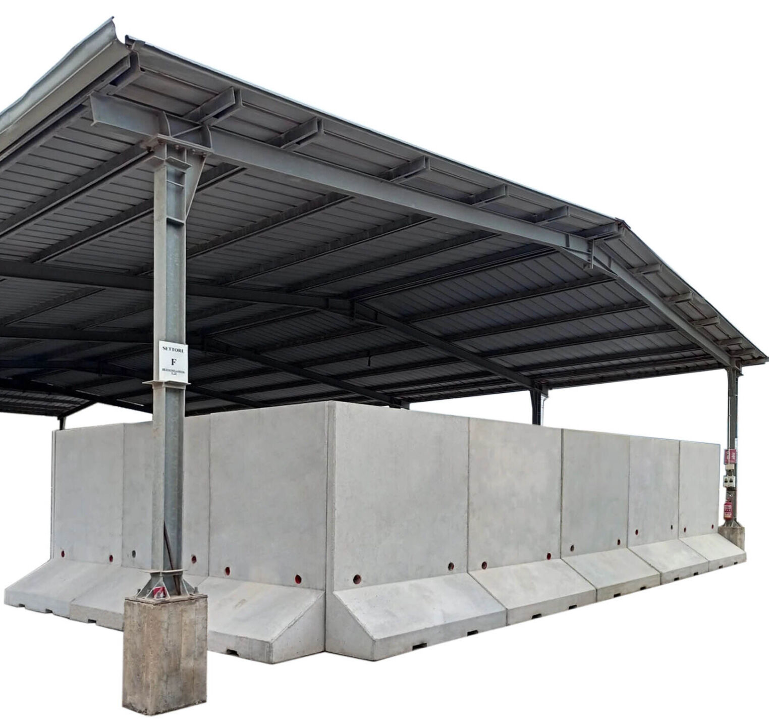 Gli elementi prefabbricati sono moduli in cemento armato vibrato autostabili e portanti da appoggiare al terreno senza bisogno di ulteriori opere. Gli schemi di configurazione possono essere svariati e permettono di stoccare materiali di qualsiasi tipologia.