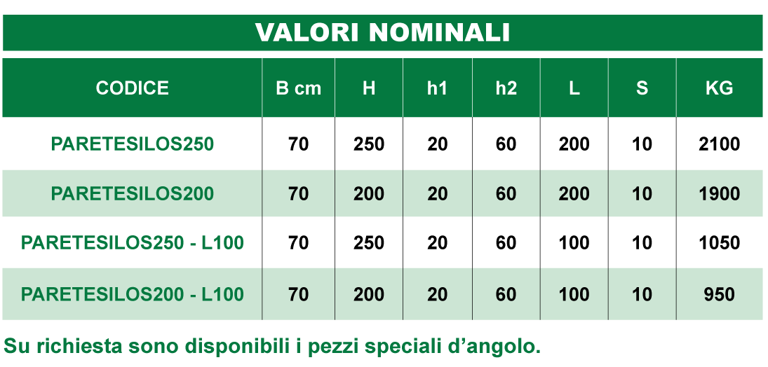Le Pareti Silos prodotte dalla Cinus Srl sono realizzate con materiali certificati CE, secondo le regole generali di fabbricazione. È conforme all’utilizzo previsto come elemento di separazione mobile ed è un monoblocco realizzato in CLS armato vibrocompresso ad alta resistenza, disponibile in varie dimensioni rispetto all’altezza ed alla lunghezza. Sono elementi modulari autoportanti, pratici da posizionare; vengono assemblati per formare strutture di contenimento che possono essere utilizzate per vari scopi, adatti a settori come l’industria, l’agricoltura, l’ambiente.