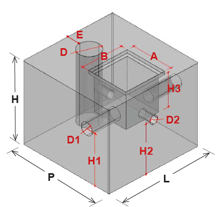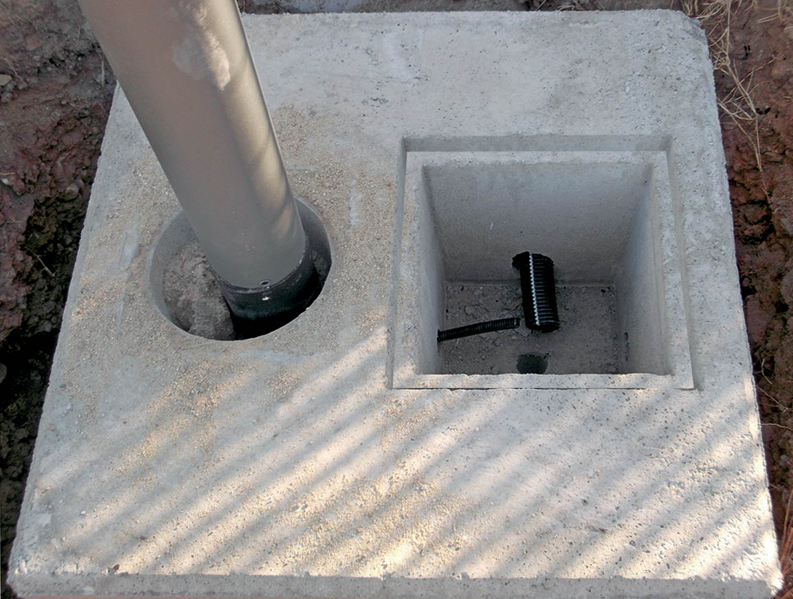 Il plinto portapalo è realizzato secondo le regole generali di fabbricazione, conforme all’utilizzo previsto come plinto di fondazione per pali di altezza variabile fino a 14 mt. fuori terra e che non debbano sopportare carichi di trazione laterale (cavi, agganci di sommità). Il suddetto manufatto è quindi idoneo a essere impiegato per pali con solo carico verticale che sorreggano un punto illuminante e con passaggio di cavi interni al palo. È un monoblocco realizzato in CLS vibrocompresso ad alta resistenza, disponibile in varie dimensioni; è compreso un pozzetto per l’ispezione dei cavi al palo e sono presenti tre impronte cilindriche per il collegamento alla linea.