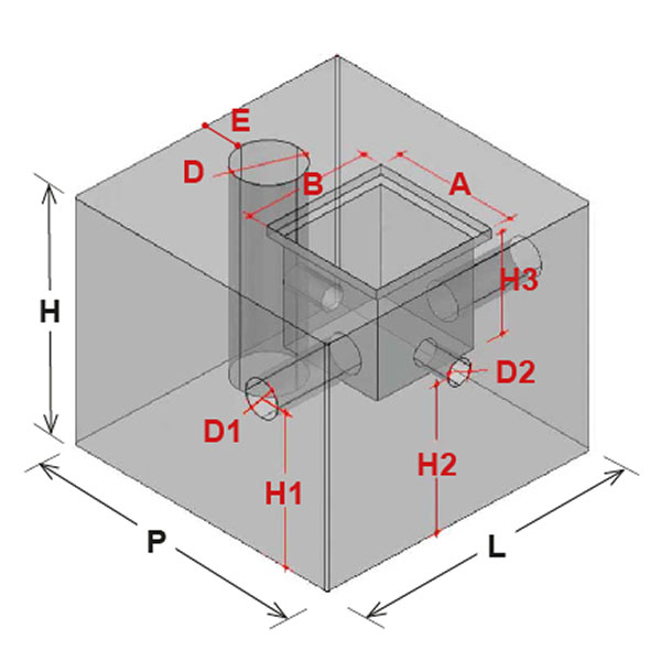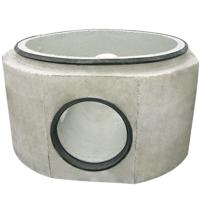 Struttura verticale a tenuta d’acqua utilizzata per il collegamento di condotte per modificarne la direzione e/o la quota. Provvisto di innesto per tutti i tipi di tubi fino a Ø 400, rivestimento del fondo con resina epossidica e gradini alla marinara.