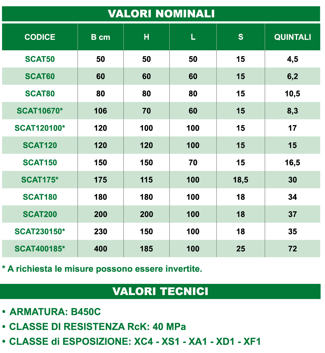 I manufatti dovranno essere costruiti in conformità alle norme UNI EN 14844:2006 Elementi Scatolari, NTC 2018 Norme Tecniche per le Costruzioni, UNI 206 2021: Calcestruzzo Specificazione, prestazione, produzione e conformità. Realizzato con materiali idonei ed in particolare: Acqua priva di sali (solfuri e cloruri) secondo UNI EN 1008:2003. Cemento tipo CEM II/B-LL42.5R. Inerti lavati e selezionati, dosati secondo adeguata curva granulometrica. Rapporto acqua e cemento max 0.45 secondo norma UNI EN 206 per le classi di esposizione XC4 (resistente alla corrosione indotta da carbonatazione), XS1, XD1 (resistente alla corrosione indotta da cloruri anche di provenienza marina), XF1 (resistente all’attacco dei cicli gelo/disgelo con senza sali disgelanti), XA1 (resistente ad ambienti chimici aggressivi nel suolo naturale e nell’acqua presente nel terreno).